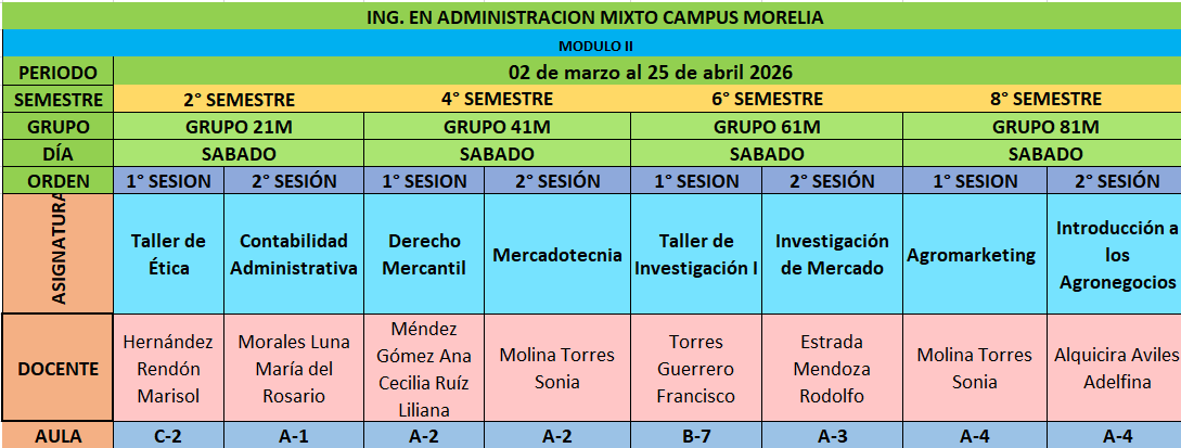 MODULO II. ING. ADMON MORELIA por María Diana Sánchez Pahuamba - jueves, 26 de febrero de 2026, 15:11 Enlace permanente Discutir este tópico/tema (0 respuestas hasta el momento)