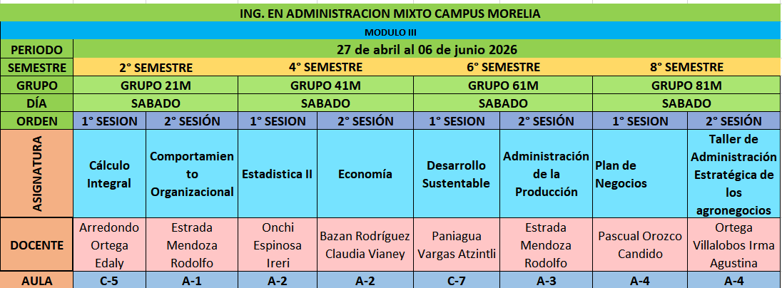 MODULO III.ING. EN ADMON.MORELIA por María Diana Sánchez Pahuamba - viernes, 24 de abril de 2026, 13:56 Enlace permanente Discutir este tópico/tema (0 respuestas hasta el momento)