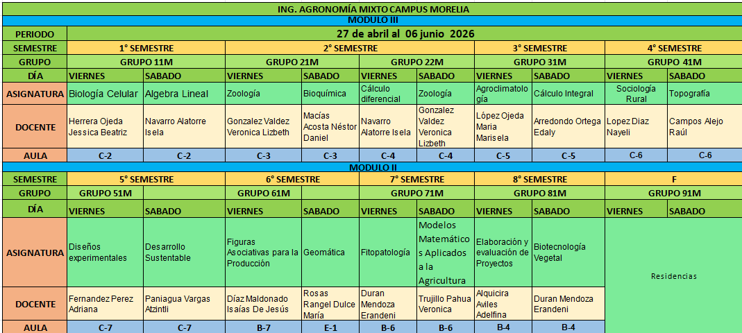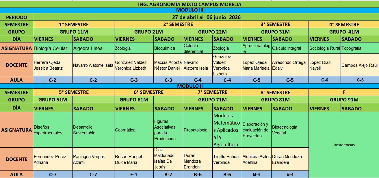 MODULO III.ING. AGRONOMIA.MORELIA por María Diana Sánchez Pahuamba - viernes, 24 de abril de 2026, 14:00 Enlace permanente Discutir este tópico/tema (0 respuestas hasta el momento)